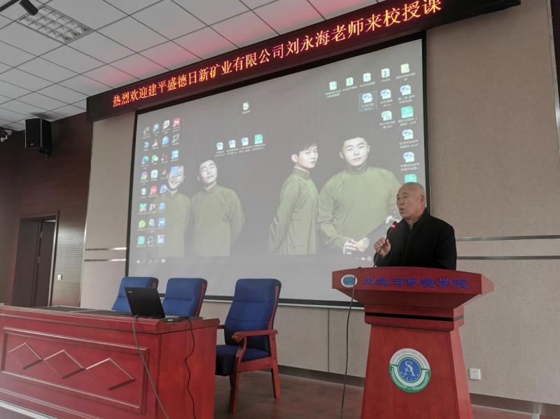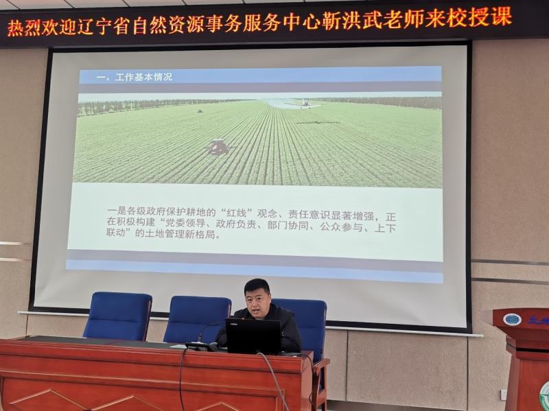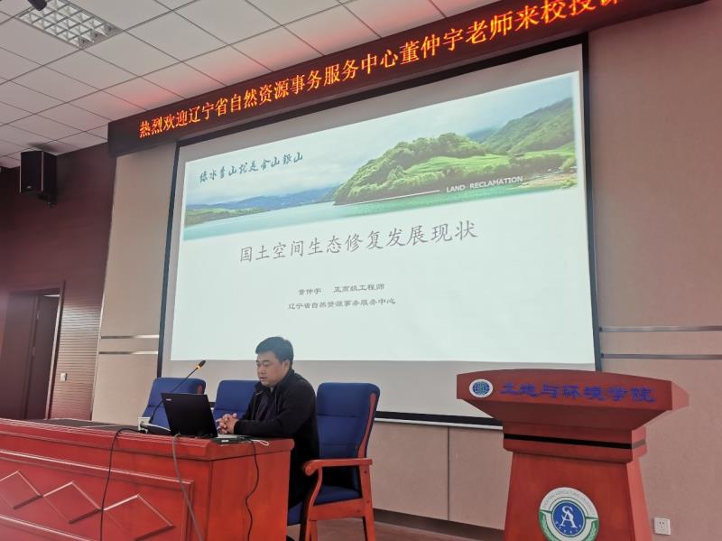4月29日上午学院邀请建平盛德日新矿业有限公司刘永海董事长、辽宁省自然资源事务服务中心国土空间规划和生态修复部生态修复组组长董仲宇、辽宁省自然资源事务服务中心自然资源调查与确权登记部基本农田监测核查组组长靳洪武。分别以“铁矿山资源效率提升途径和绿色矿山建设”、“国土空间生态修复发展现状”和“辽宁省耕地保护工作动态及政策”为题,为土地整治工程本科生、土地资源管理学科硕士生进行专业教育与社会需求方面的讲座。