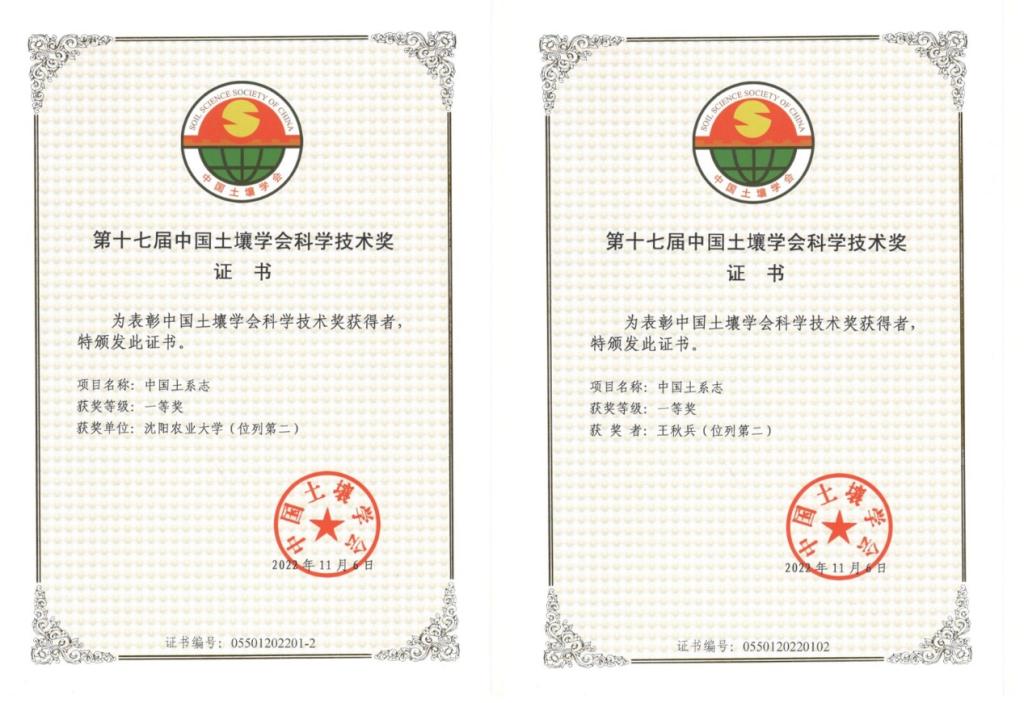 王秋兵教授作为第二完成人申报的研究成果“中国土系志”荣获一等奖。