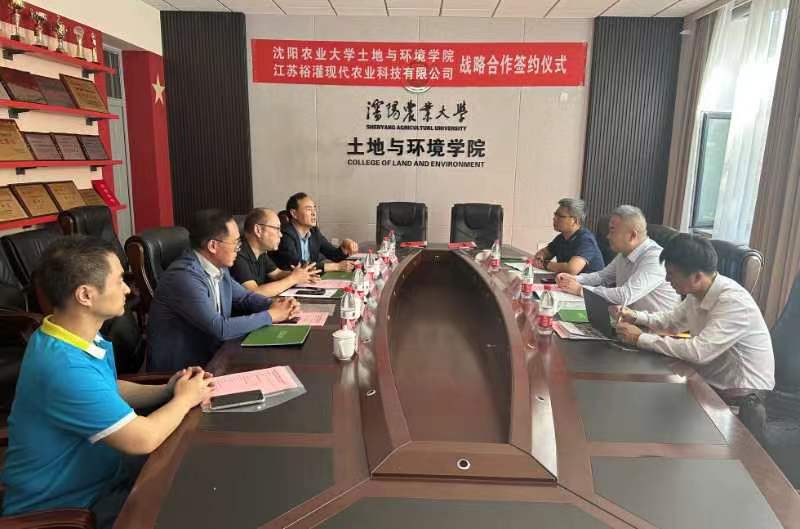 与江苏裕灌现代农业科技有限公司在学院会议室举行战略合作签约仪式。江苏裕灌现代农业科技有限公司总裁李铭、副总裁谭戟、技术研发总监宋超、学院领导班子成员及相关教师出席了此次活动,签约仪式由学院党委书记陈志刚主持。