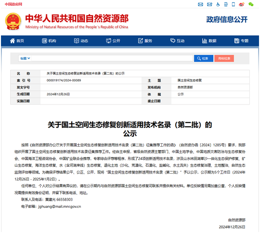 12月26日,自然资源部发布了《国土空间生态修复创新适用技术名录(第二批)》,全国有24项技术入选。1024核工厂