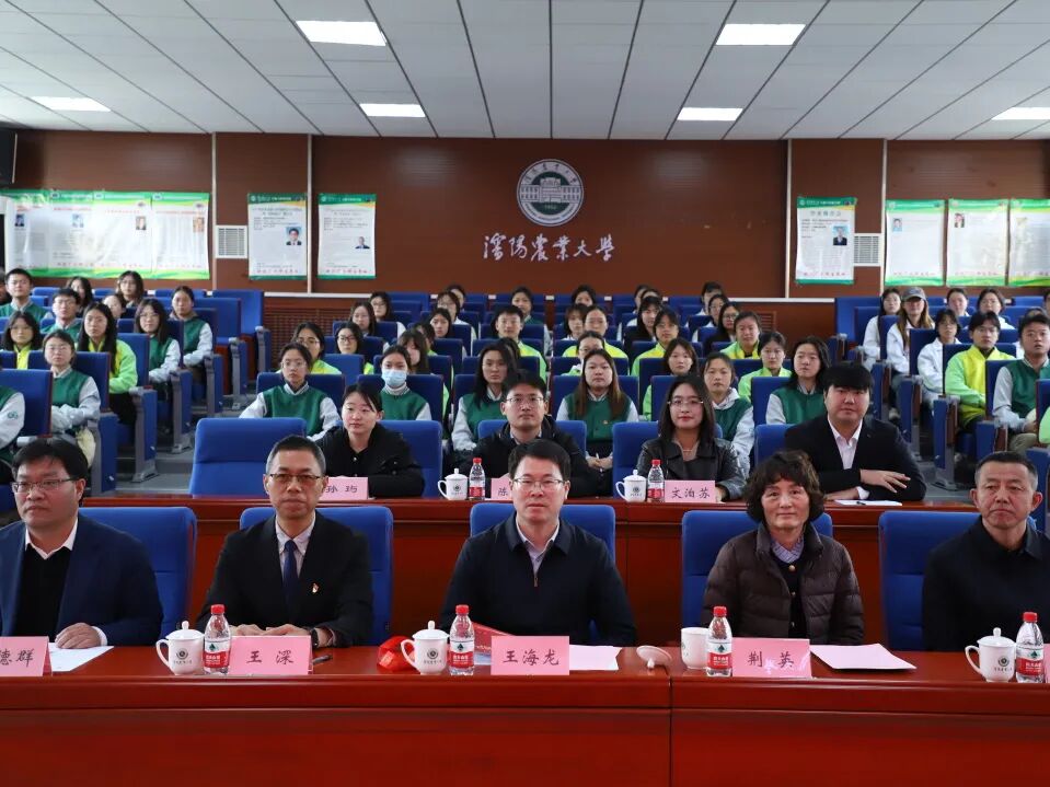 校党委常委、副校长王海龙发表讲话,对盖世食品股份有限公司的爱心捐助表示感谢,并勉励青年学子自立自强、勇于创新,努力成长为担当民族复兴大任的时代新人。