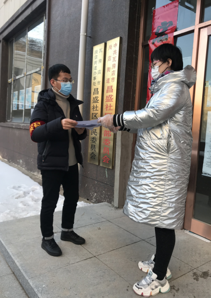 的在读研究生党员,原本放寒假在家休息的她深受那些“逆行者”的鼓舞,征得了父母的理解和支持后主动到家乡内蒙古乌兰察布市化德县白音特拉乡卜拉乌素村积极协助村里开展疫情防控工作。乡下农村区别于县城社区统一管理,农村多为年龄较大的老人和春节期间返乡探亲人员,农村条件有限,关于疫情最新信息不能第一时间掌握,她协助村干部在村里宣传疫情防控知识,通过宣传让广大群众熟知了疫情防控知识和相关政策措施,提高了群众自我防护意识和能力。与此同时,协助村支部书记做好探亲人员延迟返回工作地点的思想工作和防止聚众活动的监督工作。疫情期间在村卡口,对进出村庄的车辆和人员进行逐一仔细检查登记,并对驾乘人员进行体温监测登记,尽管工作环境艰苦,但厚厚的军绿大衣和执勤的红袖章激励她一丝不苟的做好每日防控工作。她说:从这次的志愿活动中,不仅锻炼了意志,还体会到了尽自己所能帮助大家而带来的快乐和成就感。这将激励她更加努力学习,在下次需要的时候,继续站出来服务大家。