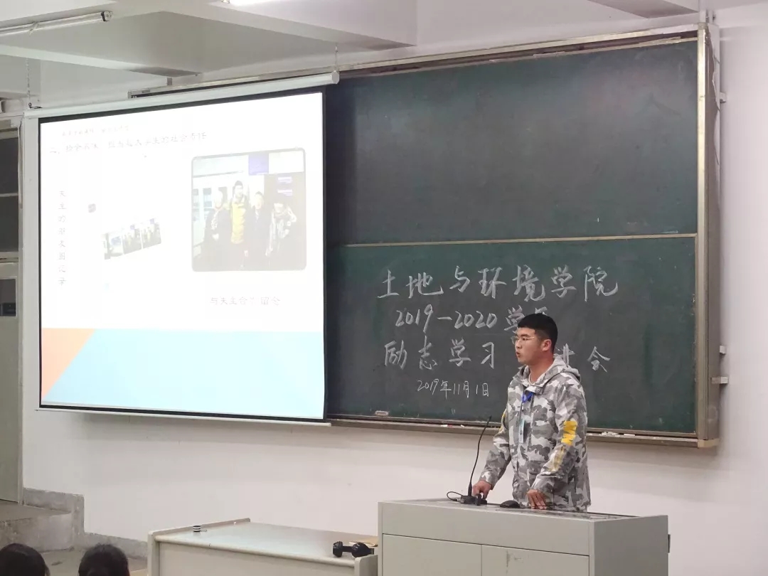 “我身边的榜样”主题励志学习宣讲会在一教南区102顺利召开。19级全体同学参与会议,辅导员范超老师出席会议,助学管理部部长逄然然主持会议。