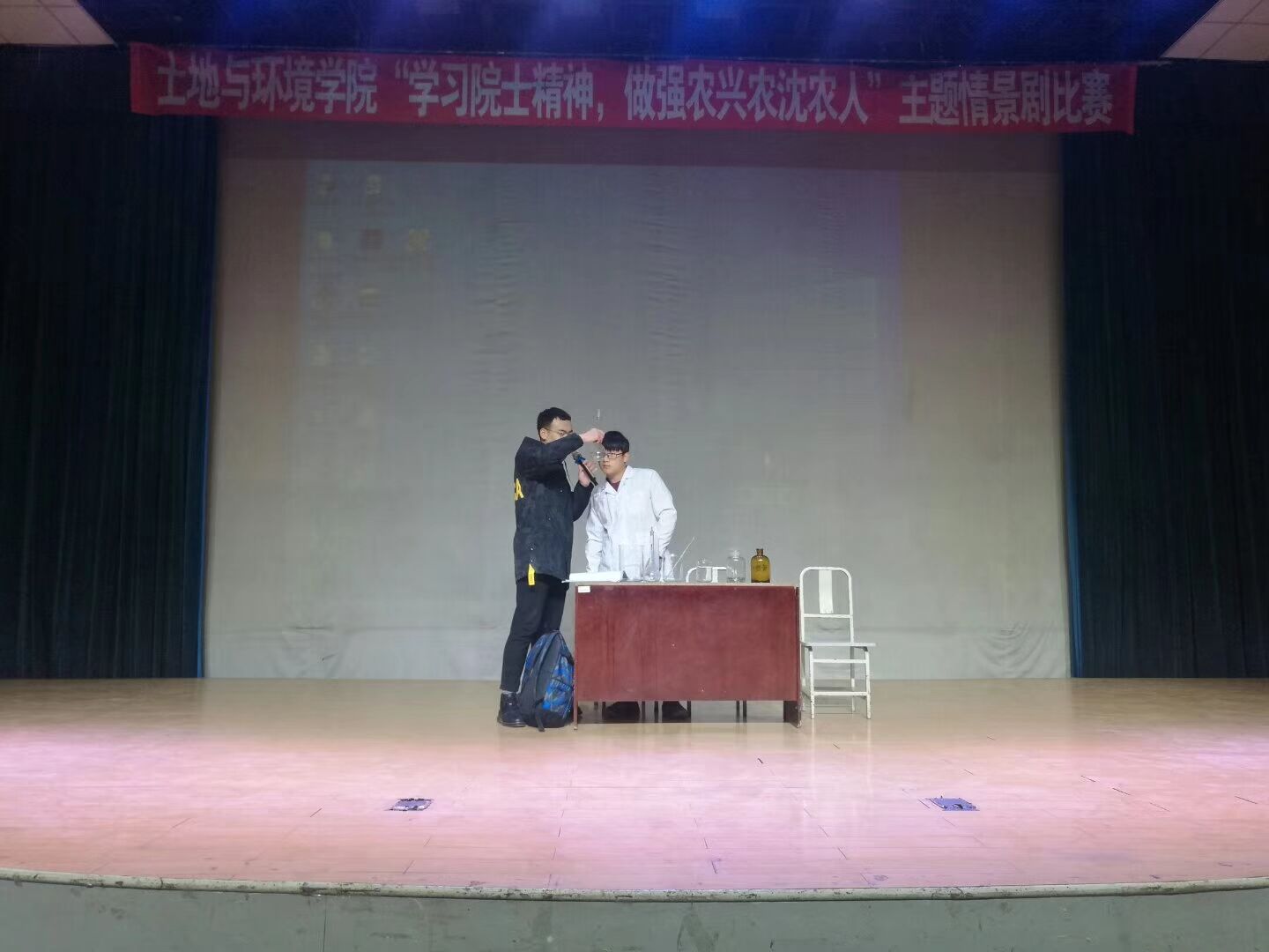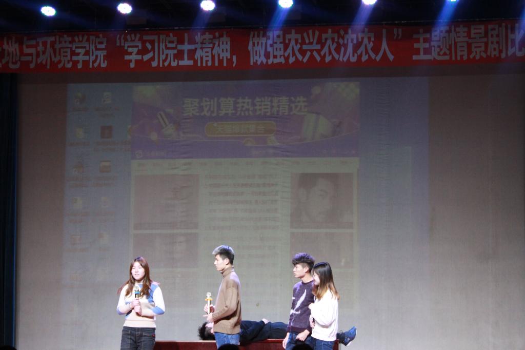 “学习院士精神,做强农兴农沈农人”主题情景剧比赛于沈农大讲堂成功举行 。院团委书记杜杰老师,辅导员范超老师出席活动。