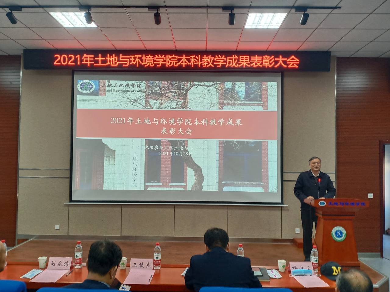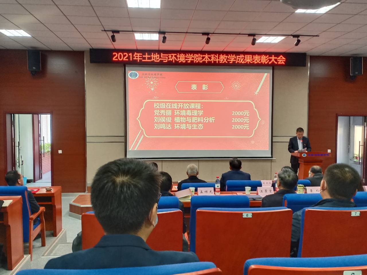 本科教学成果表彰大会在土壤楼A座226学术报告厅顺利召开。副院长李炳学老师主持大会。王铁良副校长到会讲话并为获奖师生颁奖。