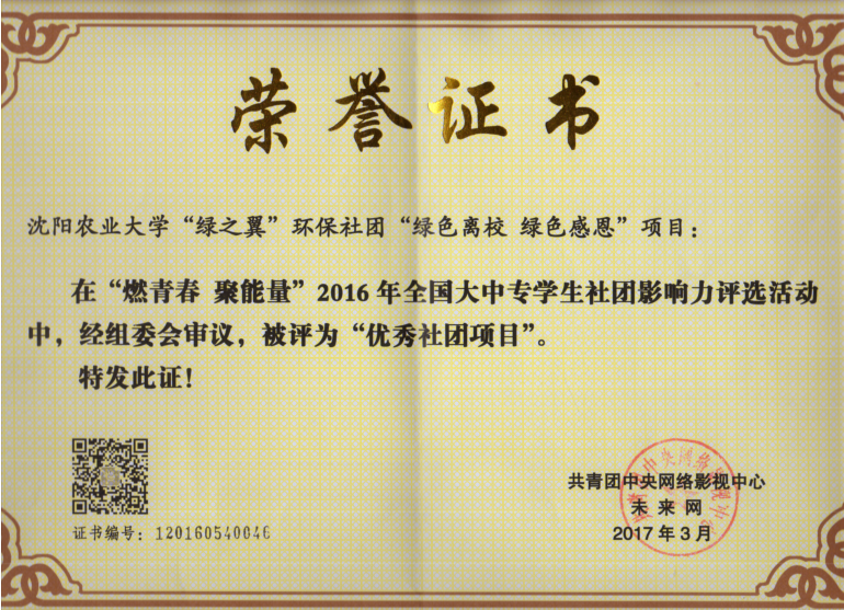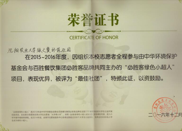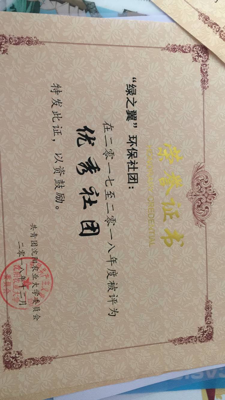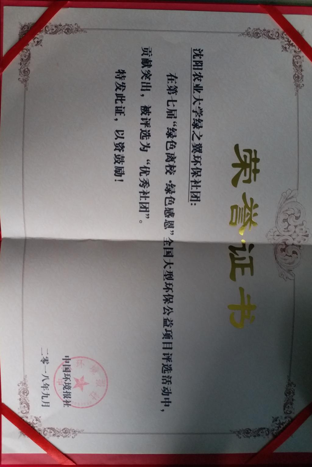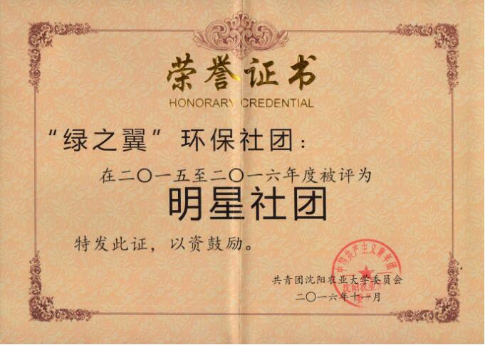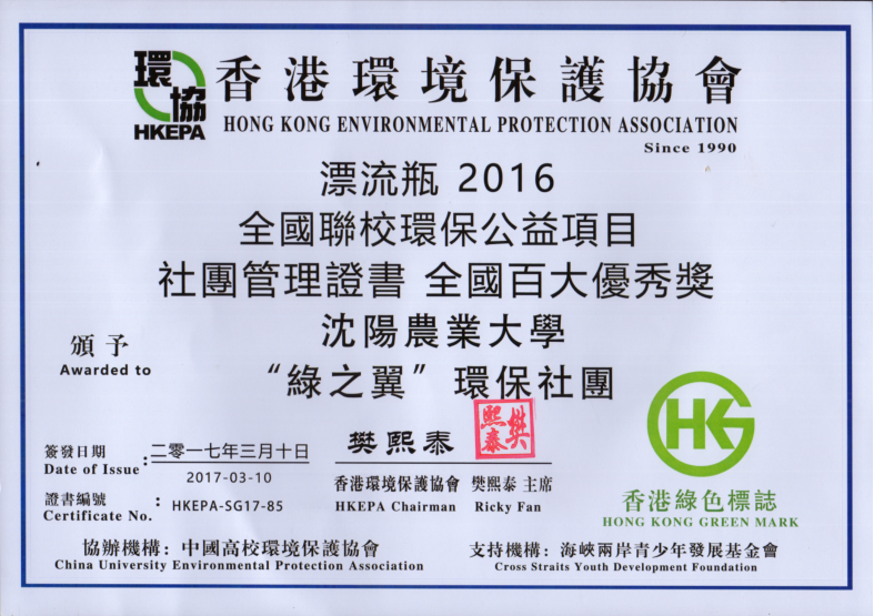 绿之翼环保社团所获奖项照片