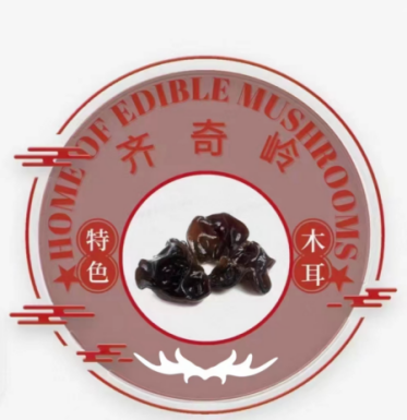 Logo设计理念:logo 围绕特色产品木耳,颜色以红色为基础,采用民族特色鹿角作为点缀,同时齐奇岭村也被誉为食用菌之乡,logo上半部的英文得以体现。