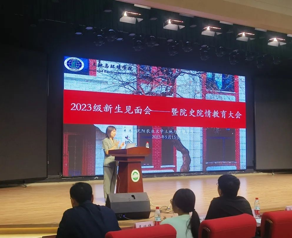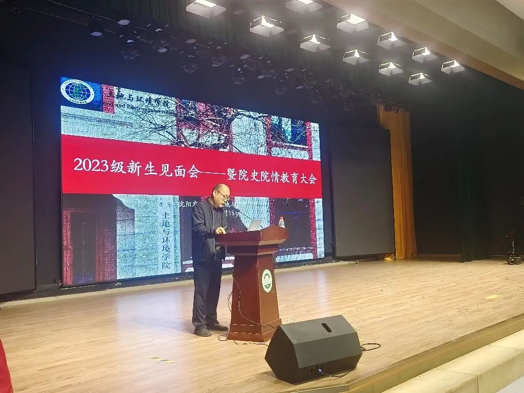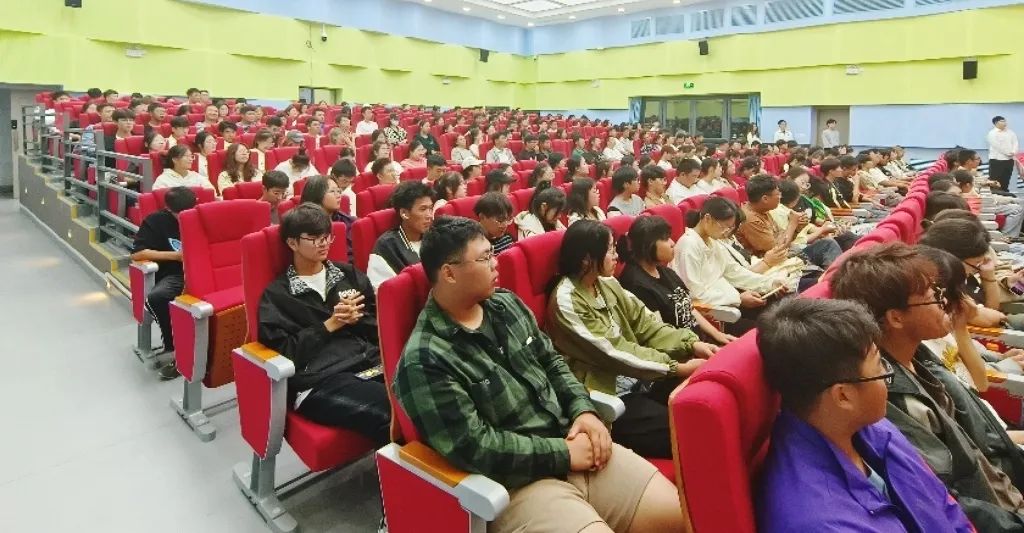 2023级本科生入学教育暨院史院情教育大会在校艺术中心召开。学院领导班子成员、各专业主任、2023级新生班主任、院办公室主任及全体本科生辅导员出席本次会议,大会由院党委副书记袁玲主持。