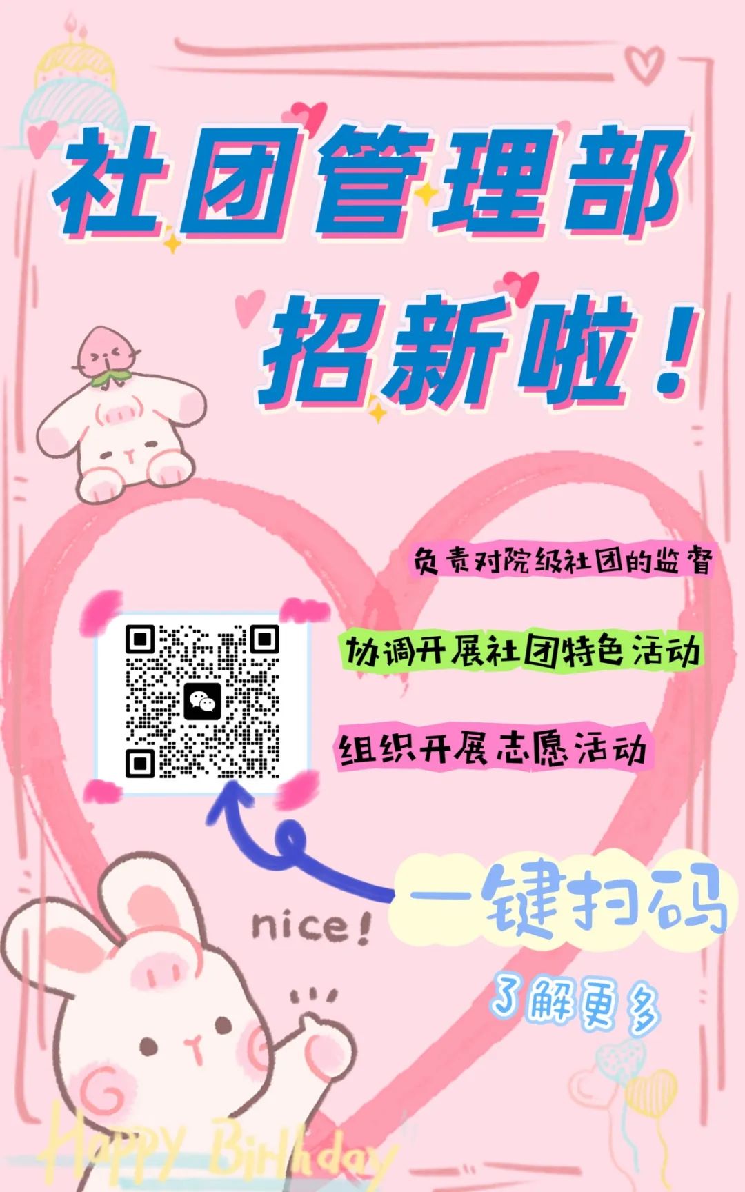 1. 负责对各院级社团的管理与监督;