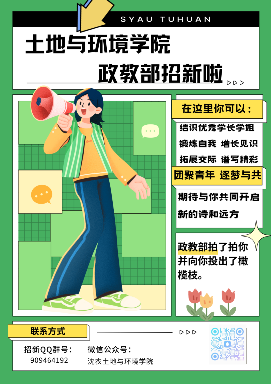 凉风至,好秋来。踏入土环的你们,是否期待着收获的欣喜、能力的提升,好消息!院团委、学生会为你们提供一展身手的舞台。在这里,你不仅能收获一群志同道合的伙伴,更能锻炼团队协作能力,帮助同学、提升自己!