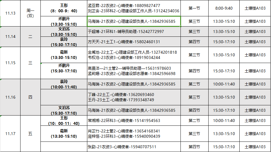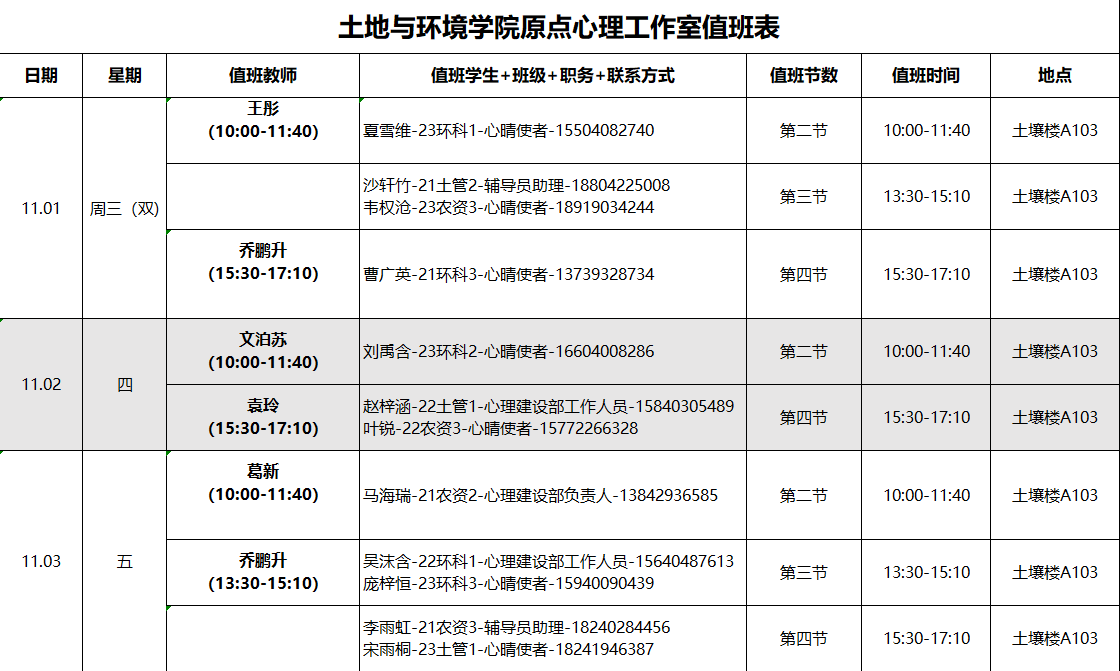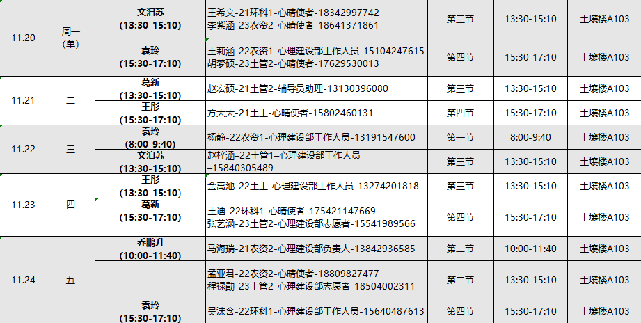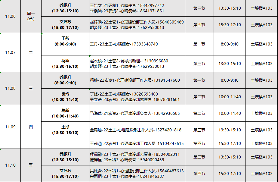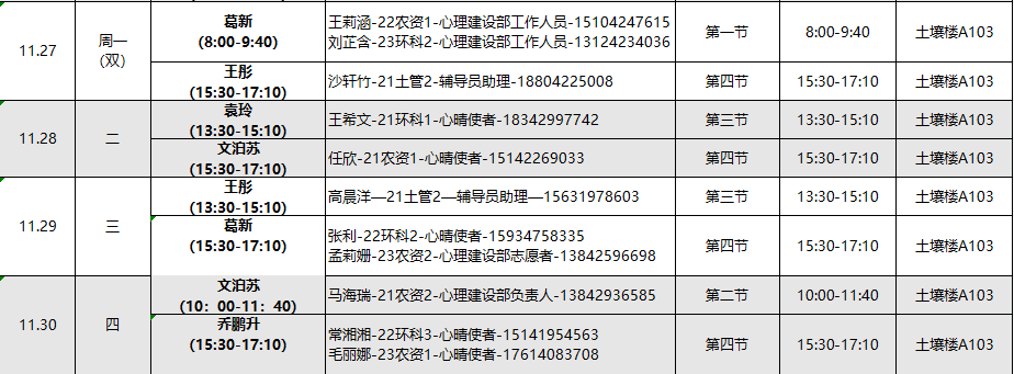 下面是11月的心理工作室值班安排表,欢迎同学们扫描下方二维码预约。