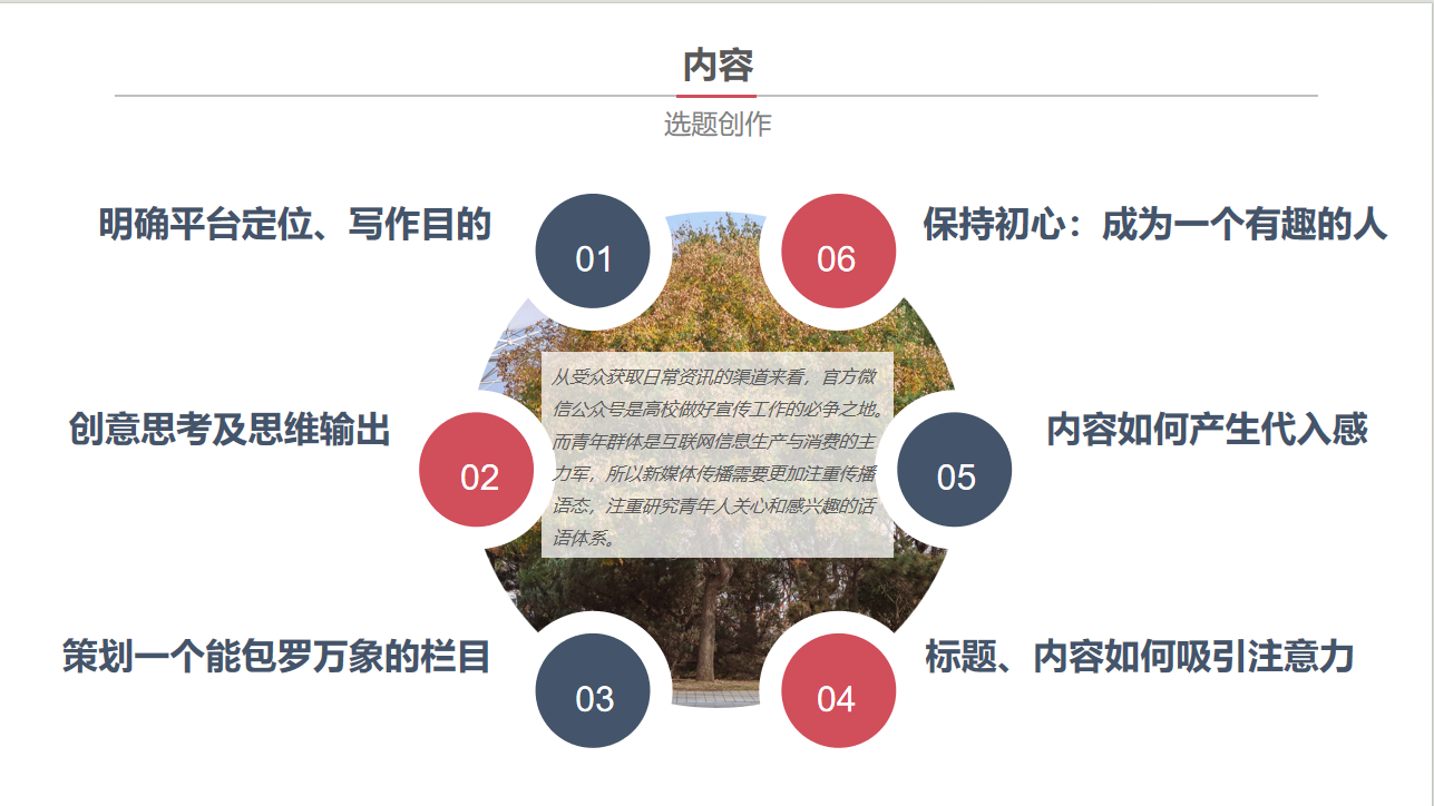 本次培训特别邀请到校党委宣传部新闻宣传中心主任何睿轩老师为同学们作题为“大盒子的微信思维”的讲座。会议由葛新老师主持,学院党委副书记袁玲老师、团委书记王彤老师、辅导员文泊苏老师出席。