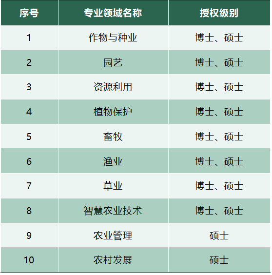 近日,中国学位与研究生教育学会编修发布《研究生教育学科专业简介及其学位基本要求(试行版)》。文件内容主要包括《研究生教育学科专业目录(2022年)》中每个一级学科/专业学位的简介和学位基本要求,为各级教育主管部门和学位授予单位开展学科专业管理、规范研究生培养、加强学科专业建设、制订培养方案、开展学位授予等提供参考依据,为社会各界了解我国学科专业设置、监督研究生培养质量提供渠道。农业专业学位领域设置调整清单正式公布,农业博士下设8个专业领域,同时农业硕士调整为10个专业领域。