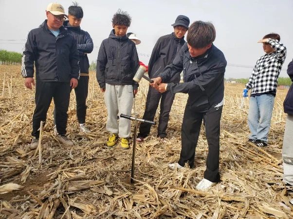 农业资源与环境专业本科生进行土壤样本采集
