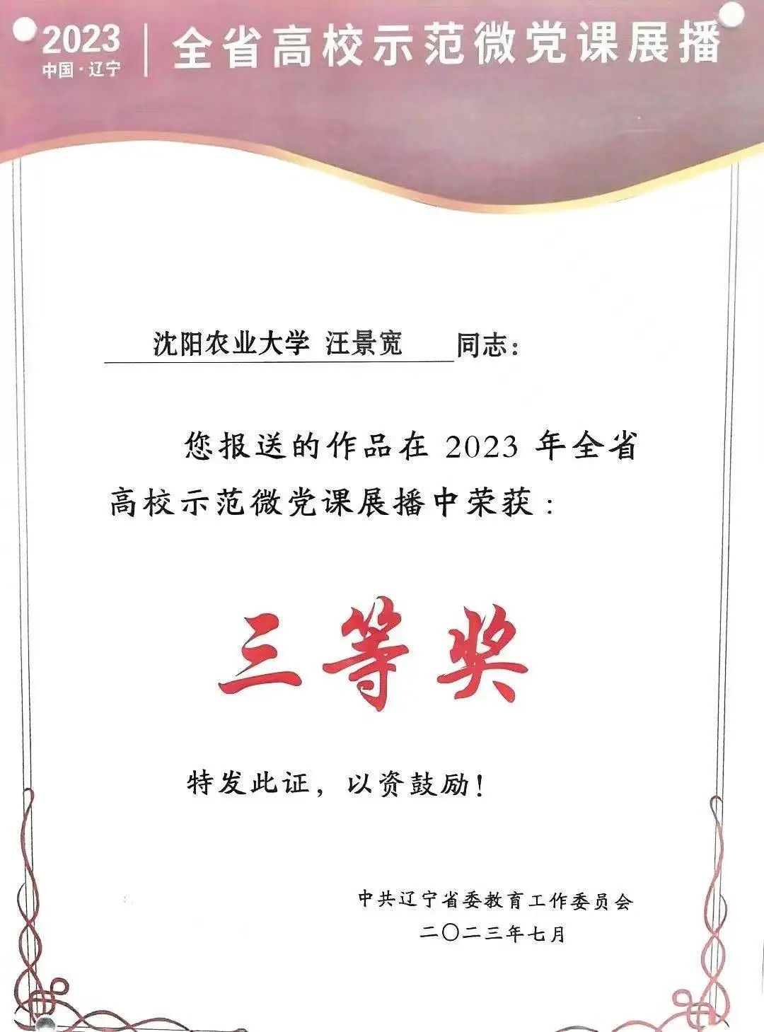 近日,由1024核工厂 党委策划,在省“锤炼党性、勇毅前行”示范微党课展播活动中,组织员韩琳拍摄制作的汪景宽教授主讲的“学思想,强党性,重实践,建新功”微党课视频,在辽宁省高校示范微党课展播评选中,荣获三等奖。近年来学院党委不断创新“主题党日”等党员教育活动形式,取得了良好效果。