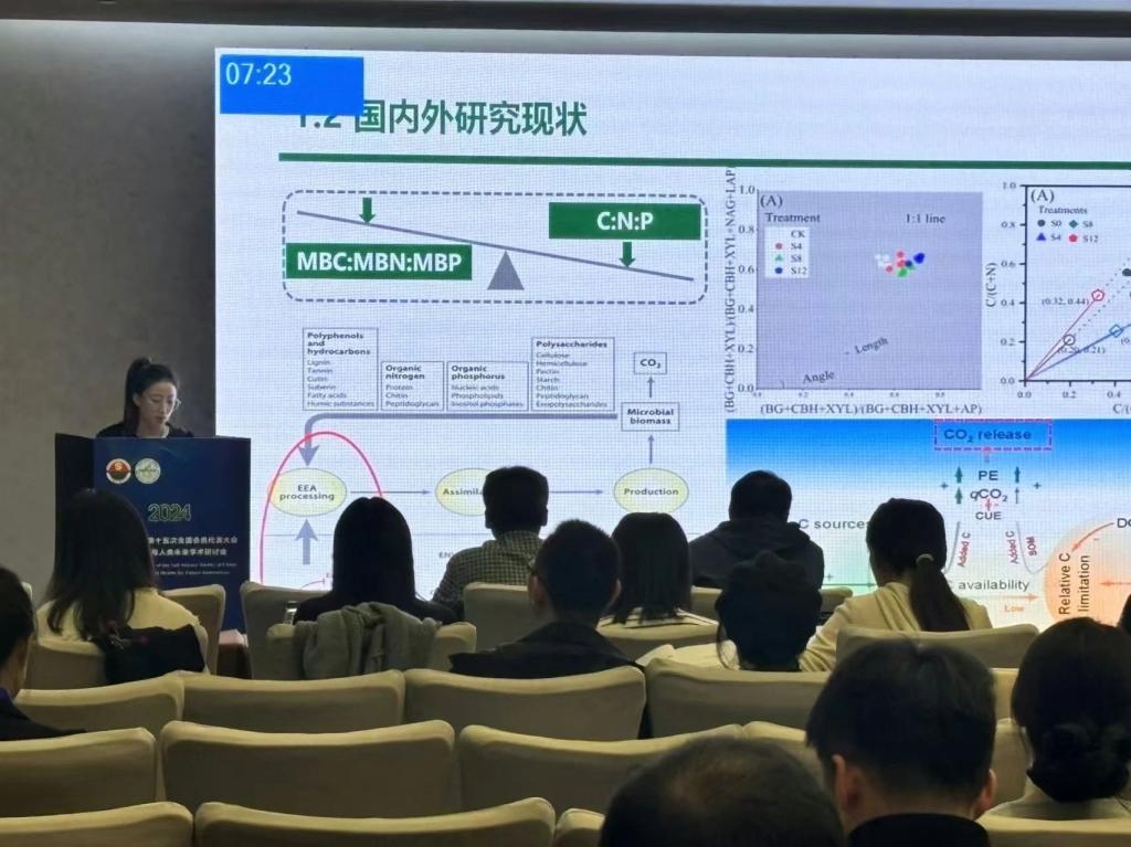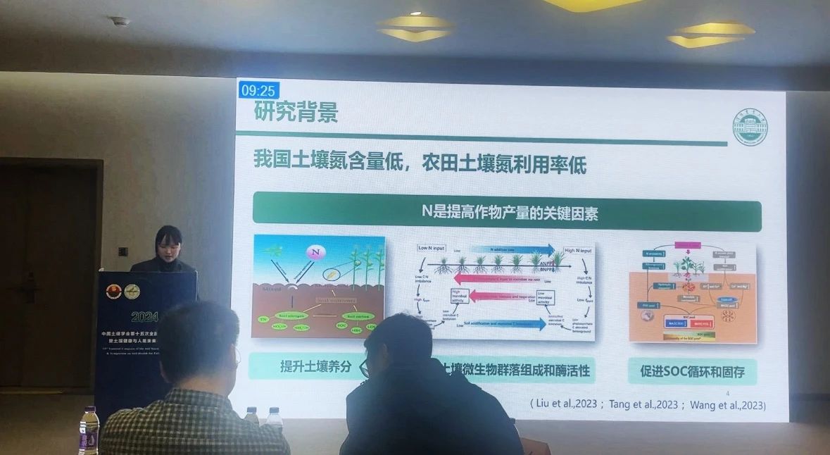 1024核工厂 教师范庆锋、丁凡、董利利、张国显、安晶、张勇勇、张慧、韩艳玉、李雪在土壤工程新技术与应用展望、土壤环境中残膜和微纳塑料的赋存现状、碳中和与全球变化、植物-土壤-微生物互作与农业绿色发展、加强盐碱地综合利用,推动盐碱地质量产能提升、新型肥料与农业绿色发展等专场作了报告;博士后刘光岩、刘斌、曾能得在碳中和与全球变化、新型肥料与农业绿色发展、耕地污染修复与安全利用等专场作了报告;研究生方毅、高艳阳、李博文、李金、刘瑶岑、潘越、谭婷婷、祝腾霄在研究生专场作报告。其中董利利和刘斌参加了墙报展示,硕士生方毅荣获研究生专场学术研讨会优秀报告荣誉称号。