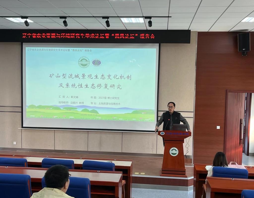 10月23日,第二期辽宁省农业资源与环境研究生学术论坛暨“恩凤论坛”报告会在土壤楼A座226报告厅成功举办。本次活动邀请了土壤地理与土地资源团队2021级博士生靳文娟进行了题目为“矿山型流域景观生态变化机制及系统性生态修复研究”的学术汇报,共一百余名研究生听取本次报告。副院长边振兴、裴久渤出席活动,学术报告由边振兴教授主持。