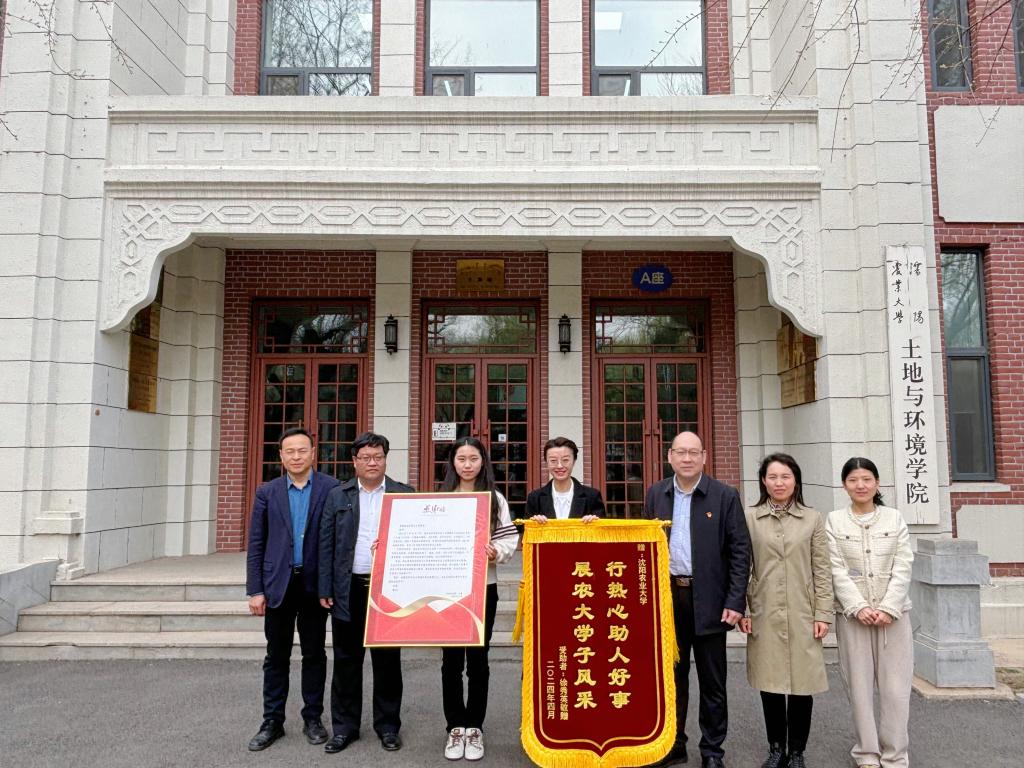 收到沈阳市民刘清女士送来的写有“行热心助人好事 展农大学子风采”的锦旗和感谢信,信中对学院2023级土地资源管理专业高祎涵同学在她母亲遇车祸受伤时伸出援手表示感谢。